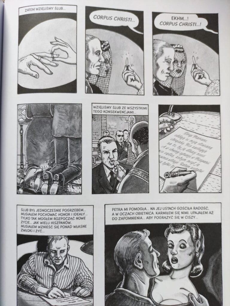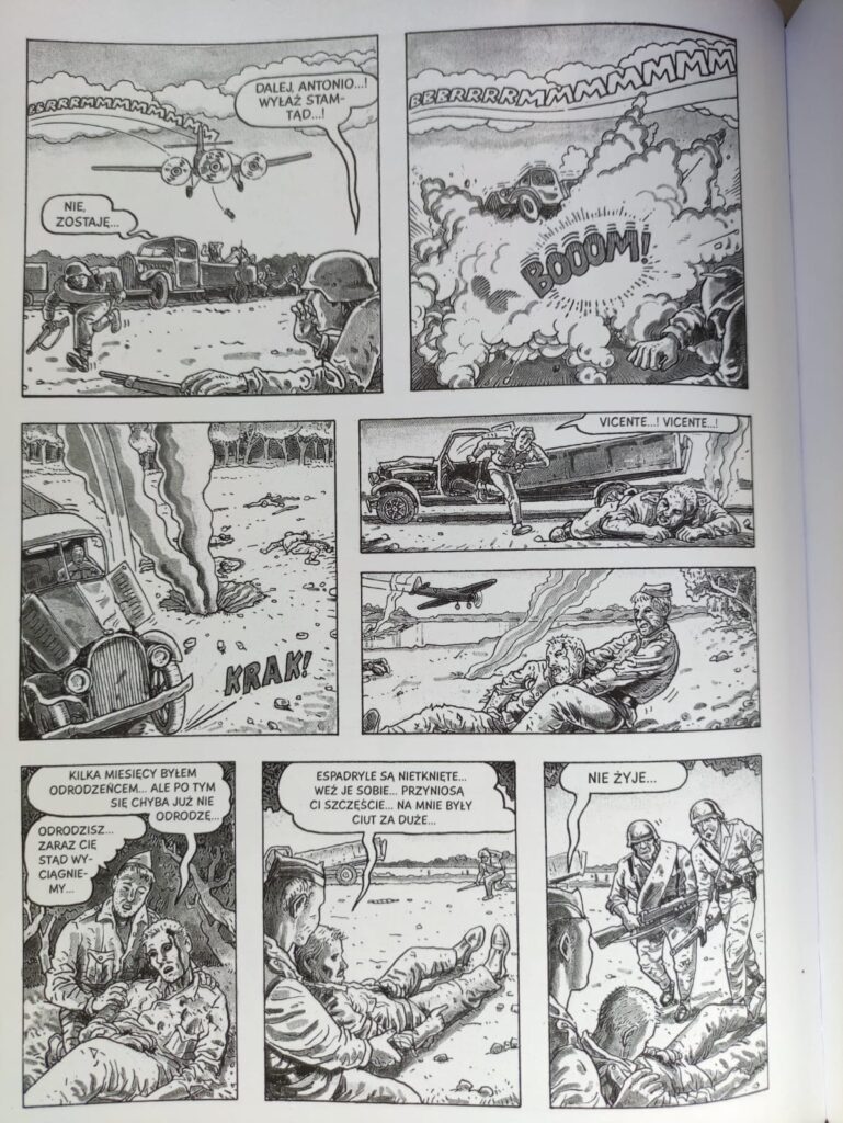 Im bliżej końca tym bardziej wyczekiwałem morału, pozytywnej puenty. Niestety, z tragikomedii uwypukla się tu jedynie tragizm. Z perspektywy wydarzeń, jakie mają miejsce od 1910 do 2001 roku – Epopeja Hiszpańska jest ciekawym komentarzem społecznym. Zmiany polityczne, przez faszyzm i republikę, są widziane przez pryzmat życia codziennego, z perspektywy socjalisty-idealisty, jakim jest Antonio. Puentą historii jest co najwyżej to, że nic nie zgniata tak jak samo życie. Po przejściu przez „Sztukę latania”, dodatkowe traumy wypływające ze „Złamanego skrzydła” były już po prostu męczące. Siłą rzeczy obie historie się uzupełniają, tworząc origin story Scenarzysty, którym osobiście nie chciałbym się chwalić. Może twórca raczej się żalił, bo patrząc ciut cynicznie, patologie pojawiają się na każdym kroku tej historii.