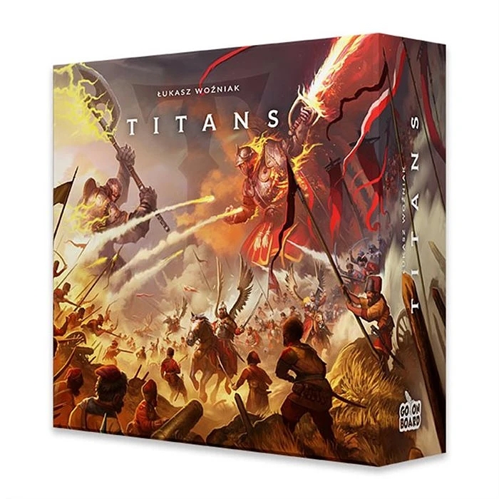 Na koniec zostawiłem Tytanów Łukasza Woźniaka, którzy ukazali się za sprawą wydawnictwa Go On Board. Tutaj mamy do czynienia z pełnym power fantasy, gdzie wśród jednostek znajdziemy olbrzymiego ciężkozbrojnego husarza. Górującego nad mapą z charakterystycznymi skrzydłami na plecach. Alternatywne uniwersum osadzone w XVII wieku opowiada historię gdzie ludzie o nadzwyczajnych mocach ramię w ramię z tytułowymi tytanami walczą o ponowne zjednoczenie Europy. Mechanicznie otrzymujemy przejmowanie terenów okraszone dość oryginalnym rozwiązaniem zagrywania akcji ze wspólnej puli kart. W pudełku piękny festiwal plastiku i wykonanie na wysokim poziomie.
